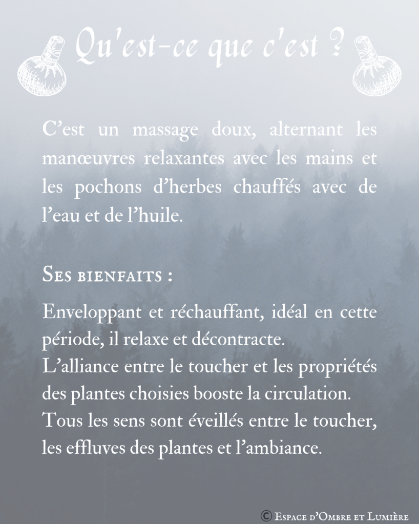 Et toi, as-tu déjà essayé le massage aux pochons d’herbes chaudes ?